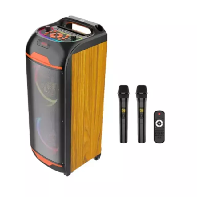 Potencia, autonomía y conectividad en un parlante ideal para fiestas, eventos y karaoke. Con doble woofer de 8", batería de larga duración y Bluetooth 5.0, ofrece un sonido potente y estable en todo momento.